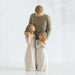 - Figure of standing man in blue/gray shirt and dark pants, with arms around two young girls standing in front of him
