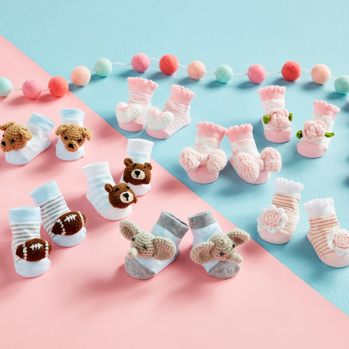 Step up your baby's sock game with these dog crochet rattle toe socks! Not only will they keep tiny toes warm, but they also provide endless entertainment with their fun rattle feature. Who knew socks could be so cute and functional? (Sock it to 'em!)